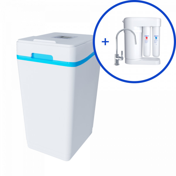 Малогабаритная система умягчения воды с обратноосмотической системой очистки и предфильтрацией в подарок